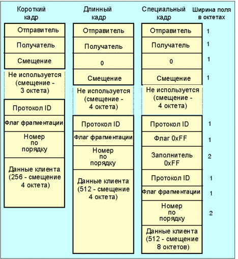 Значение флага фрагментации 0xFF используется для пометки кадров специального формата (exception). Все фрагменты одного и того же сообщения имеют идентичные поля номера по порядку.