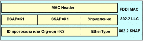 Полная длина LLC- и SNAP-заголовков составляет 8 октетов.