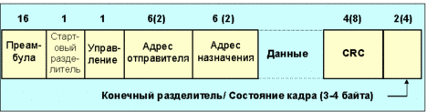 Вычитая 8 байт LLC/SNAP заголовка, получаем значения максимального размера пакета (MTU) 4470 (4478) октетов. Для совместимости размер пакетов для IP-дейтограмм и ARP-пакетов согласуется с требованиями конкретной сети. FDDI реализует маркерный доступ, формат пакета-маркера имеет вид, показанный на рис. 6. В зависимости от размера кольца в нем могут циркулировать несколько маркеров.