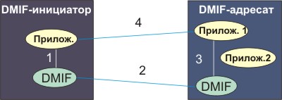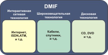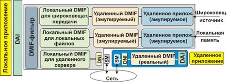 Прозрачный интерфейс MPEG-4 DMIF-приложения независящий оттого, является ли партнер удаленным интерактивным или локальной запоминающей средой.