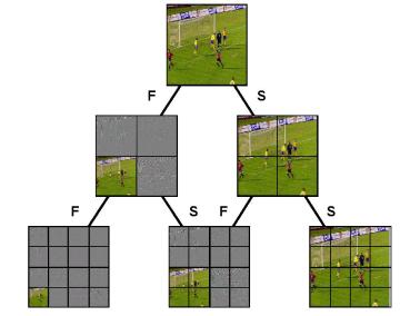 Другим подходом является использование визуальной группы MPEG-7. Здесь, каждый D имеет также индивидуальное двоичное представление. Это позволяет специфицировать число бит, которое следует использовать для кодирования индивидуальных элементов описания. Примером может служить число бит, используемых для кодирования каждой ячейки гистограммы.