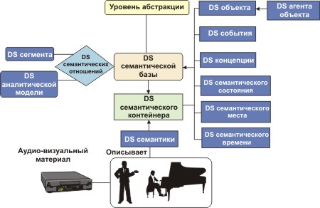 Схемы описания DS (Description Scheme), которые специфицируют структуру и семантику взаимодействия между компонентами. Эти компоненты могут быть дескрипторами и схемами описания.