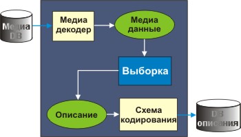 Рис. 27. Тип приложения медиа транскодирования. Из исходной DB создается транскодированная база данных, соответствующая описаниям и опционно запросу.