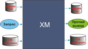 Рис. 29. Интерфейсная модель ключевых приложений XM. Эта модель показывает супернабор возможных входов и выходов ключевого приложения XM.