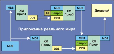 Как было заявлено выше, ключевыми приложениями в программном обеспечении XM являются приложения элементарного типа. Комбинирование ключевых приложений создает составные приложения. Так как ключевые приложения могут иметь произвольные комбинации входов, модель ключевых приложений является общей для этого диапазона приложений. Следовательно, также возможно, что приложения реального мира могут быть объединены в обрабатывающие сети, состоящие из блоков элементарных ключевых приложений и пользовательских интерфейсов, предоставляющих пользователю механизм взаимодействия и презентации результатов.