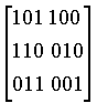 | 000001 | 001100 | 010010 | 100111 | 011111 | 101010 | 110100 | 111001 |