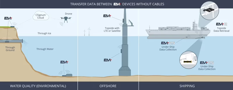 Платформа CSignum EM-2 підтримує двонаправлену передачу даних на відстань до 100 м (до 2 км з акустичним шлюзом) між підводними або підземними датчиками та приповерхневими модулями зі швидкістю 400 біт/с. З її допомогою можна успішно розгортати та експлуатувати пристрої моніторингу інтернету підводних речей (IoUT). Компанія також пропонує хмарне рішення CSignum Cloud, надаючи послуги передачі даних на додаток до своїх бездротових систем. Рішення компанії успішно використовуються у кількох проектах з моніторингу якості річкової води.