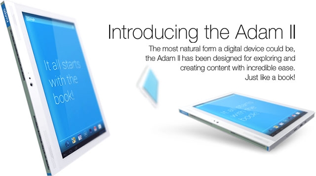 Первые технические подробности об Adam II были известны ещё в мае этого года. Новый аппарат Adam II отличается от всех присутствующих на рынке планшетов наличием монохромного информационного дисплея (STN) с разрешением 100×5 точек, который способен выводить различные уведомления на одной из своих граней. К другим особенностям стоит отнести очень строгий дизайн с подчёркнуто резкими гранями.