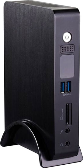 Среди других характеристик компьютера следует упомянуть два слота для установки оперативной памяти (до 8 Гбайт), пару портов USB 3.0, четыре разъёма USB 2.0, многоформатный картовод, возможность установки 2,5-дюймового накопителя с интерфейсом SATA 6 Гбит/с, встроенный HD-звук, Wi-Fi, гигабитный сетевой контроллер, два 3,5-мм гнезда для наушников и микрофона и, конечно, видеовыходы HDMI и D-Sub. Всё это умещается в довольно компактном корпусе 190 х 135 x 38 мм при весе 600 грамм.