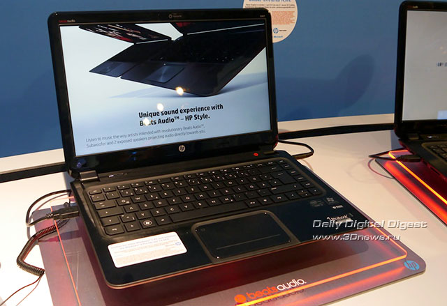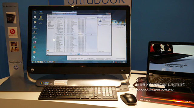 На стенде Intel были также выставлены ультрабуки HP ENVY с различными диагоналями экрана. Компьютеры основаны на процессорах Intel ULV (Ivy Bridge), оборудованы дискретной графикой AMD с 2 Гбайт видеопамяти и динамиками Beats Audio с сабвуфером. HP ENVY способен работать автономно в течение 8 часов. Ультрабук оснащается ОС Windows 7 с возможностью обновления на Windows 8 за $15.