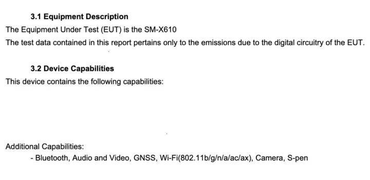 Згідно з документацією FCC, поміченою для Samsung Galaxy Tab S9 FE+, він підтримує GPS, Wi-Fi 6 і Bluetooth 5.3. Варто відзначити версію Bluetooth, яка забезпечує ефективніші бездротові з’єднання. Планшет має систему з подвійною камерою, як було зазначено раніше в просочених рендерах. Для Galaxy Tab S9 FE+ будуть доступні дві моделі, а саме версія з Wi-Fi та версія 5G. Galaxy Tab S9 FE+ також має бічний сканер відбитків пальців, S Pen і стереодинаміки.