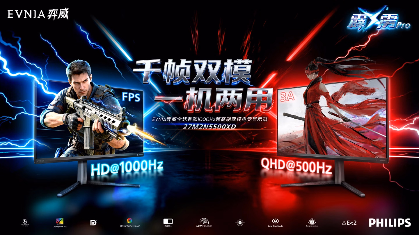 Компанія Philips Monitors сьогодні офіційно оголосила про швидкий випуск першого у світі дворежимного ігрового монітора з частотою оновлення 1000 Гц – ENIA 27M2N5500XD.
