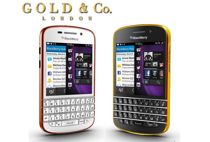 Помимо белой и черной модели готовится люксовый вариант коммуникатора. Лондонская Gold & Co. выпустит BlackBerry 10 в облачении из 24-каратного золота. Телефон в белом исполнении дополнительно украшен покрытием из розового золота.