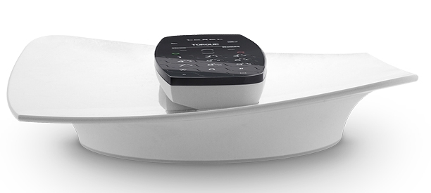 Базовый блок по форме напоминает блюдо. В его центре расположен круглый зарядный контакт, который позволяет надёжно закреплять трубку в любом положении вокруг своей оси. О возврате на подставку и начале заряда аккумуляторов оповещает подтверждающий сигнал. Нижняя часть базового блока имеет белую подсветку, свечение которой становится прерывистым во время вызова и разговора.