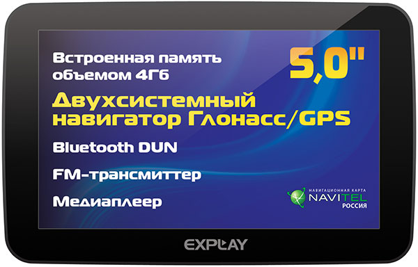 Российская компания Explay представила навигатор GN-630, наделённый двумя приёмниками: ГЛОНАСС и GPS, что способствует более точному и быстрому определению местоположения. Система поставляется со встроенными картами Навител Навигатор-5 Россия. С помощью технологий Bluetooth 2.0 и DUN устройство способно получать актуальные сведения о пробках для выбора оптимального маршрута.