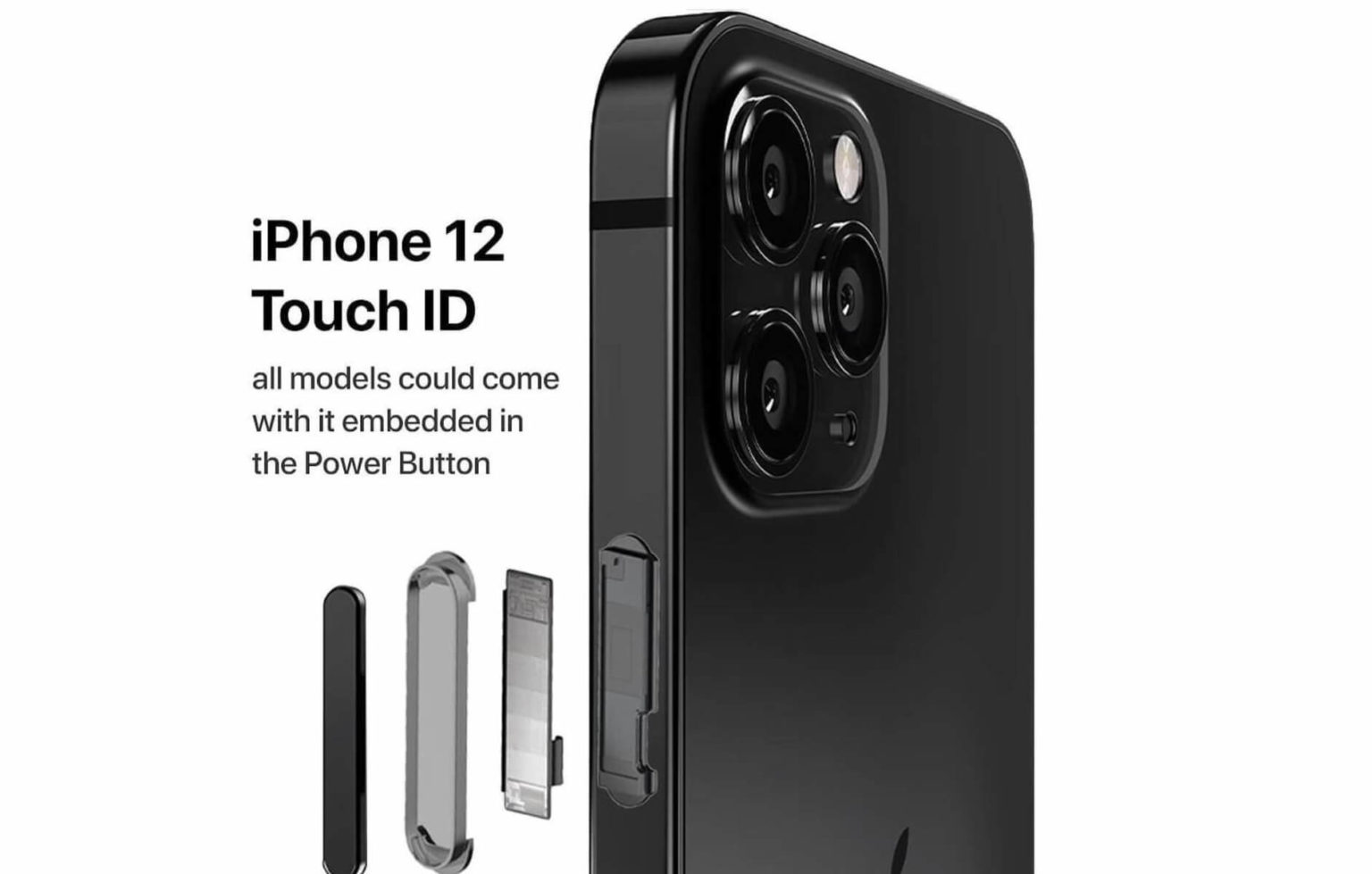 Різні джерела опублікували зображення смартфона iPhone 12, на якому говориться, що всі модулі нової лінійки можуть отримати сканер відбитків пальців Touch ID. Однак якщо раніше, до виходу iPhone X, він розташовувався на лицьовій панелі нижче екрана, то тепер дактилоскопічний датчик буде розташовуватися на бічній панелі під кнопкою включення смартфона.