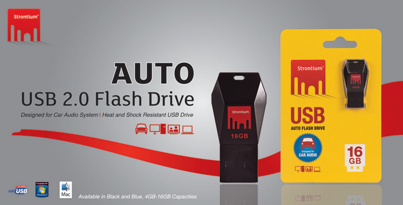 Специально для владельцев автомобилей, у которых в салоне установлена мультимедийная система с разъёмом USB, компания Strontium Technology Pte Ltd. выпустила портативный флеш-накопитель под незамысловатым названием AUTO USB 2.0 Flash Drive.