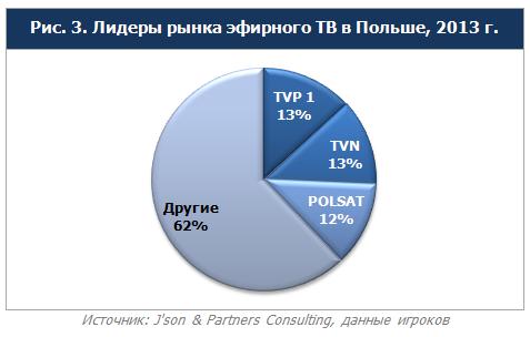 По данным J’son & Partners Consulting, в 2013 году Польша являлась абсолютным лидером среди стран Восточной Европы на рынке эфирного и платного телевидения. наименьший рынок ТВ – в Венгрии. В силу исторической развитости эфирных каналов в Чехии, она занимает последнее место среди рассмотренных стран по охвату населения услугами платного телевидения.