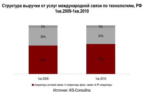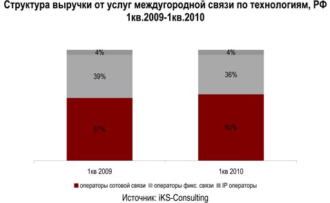 Стоит отметить, что в настоящее время наиболее активно переток трафика из фиксированных сетей в мобильные происходит в сегментах междугородной и международной связи. Об этом свидетельствует увеличение доли доходов сотовых операторов в структуре выручки от данных услуг.