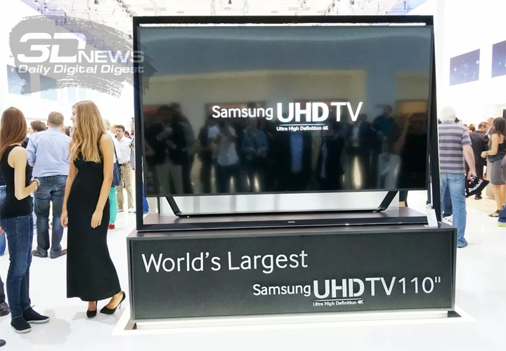 На стенде Samsung, в частности, представлена самая большая в мире панель формата UHD. Её диагональ составляет 110 дюймов, разрешение — 3840х2160 точек, что вчетверо больше, чем у Full HD (1920х1080 пикселей).