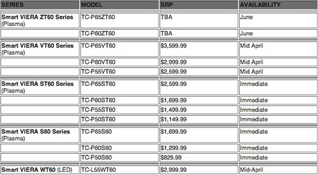 На мероприятии японская компания объявила цены на некоторые модели, включая плазменные и ЖК-телевизоры, которые поступят в продажу в этом году. Кстати, на новинку VIERA TZ60, выход которой намечен на июнь, цена до сих пор не установлена. Диагональ экранов новых моделей колеблется в диапазоне от 55” до 65”.