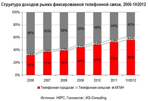 В течение последних семи лет доходы от МГМН связи стремительно падали (на 5-15% в год), доходы от местной связи стабильно увеличивались (2-20% ежегодно) – в основном благодаря повышению тарифов отраслевым регулятором (НКРСИ)