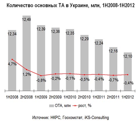 Число ОТА за 1Н2012 снизилось на 0,4% или почти на 55 тыс. – до 12,1 млн