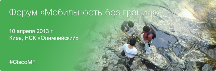 10 апреля 2013 года в киевском НСК «Олимпийский» состоится форум «Мобильность без границ», организуемый компанией Cisco. Участники мероприятия смогут узнать, как с помощью решений Cisco обрести настоящую свободу мобильности, используя единую сеть для проводного и беспроводного доступа, единую систему управления и администрирования политик доступа к ресурсам сети. В рамках форума специалисты Cisco расскажут о том, как предоставить безопасный доступ в сеть для любого мобильного устройства и что необходимо для обеспечения надлежащей работы видеоприложений в мобильной среде. Кроме того, в ходе конференции будут представлены доклады об обеспечении надежности и защищенности от посторонних радиовоздействий. Особое внимание будет уделено тому, как создать для пользователей среду, в которой применение мобильных устройств не отличается от использования проводных устройств.