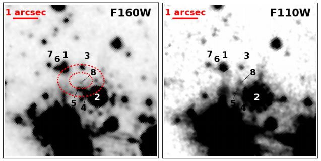 При помощи космического телескопа «Хаббл» астрономы обнаружили новый источник, который отсутствовал во время проведения наблюдений при помощи «Хаббла» в 2002 г.