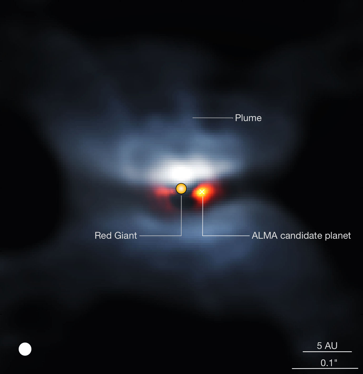 На расстоянии порядка двух расстояний от Земли до Солнца вокруг этой звезды движется объект, который, скорее всего, является планетой.