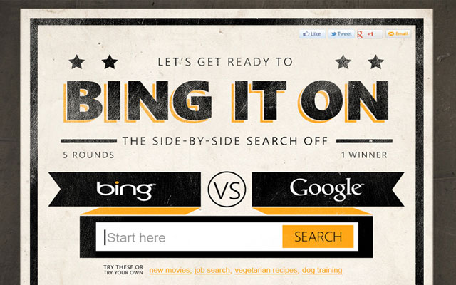 Чтобы слова не казались беспочвенными, Microsoft предложила пользователям сравнить результаты поиска в Google и Bing, поучаствовав в небольшой игре. Смысл до банального прост: пользователю необходимо ввести поисковой запрос, после чего выбрать одну из двух страниц поиска, результаты на которой ему понравились больше. По завершении пяти раундов появится таблица с результатами, в которой можно увидеть, какая поисковая система одержала победу. Важно, что пользователю во время игры не сообщается, с какой стороны отображается поисковая выдача Google, а с какой Microsoft.