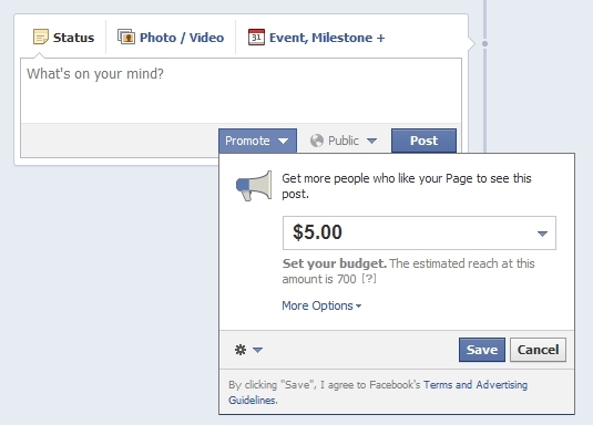 Также на Facebook недавно появилась функция, позволяющая платить небольшую сумму за повышение в рейтинге постов — так, оплаченное сообщение сможет увидеть большее количество людей. В новостной ленте такие сообщения будут появляться наподобие популярных. Функция применима к постам со сроком давности до трёх дней — при этом «популярным» такое сообщение будет оставаться тоже три дня.