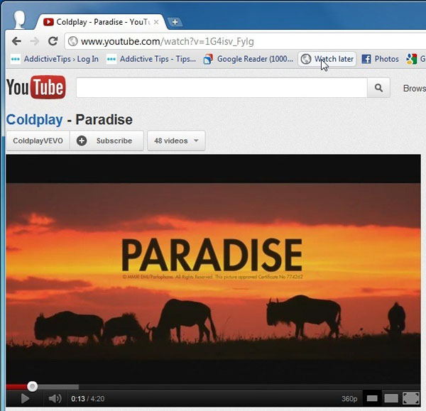 Как всегда, для любителей максимальных удобств и не желающих заниматься копированием и вставкой ссылок, припасена функция удобного скачивания, кнопка для выполнения которой находится на панели инструментов браузера под названием Watch later, то есть “посмотреть позже” (в дословном переводе).