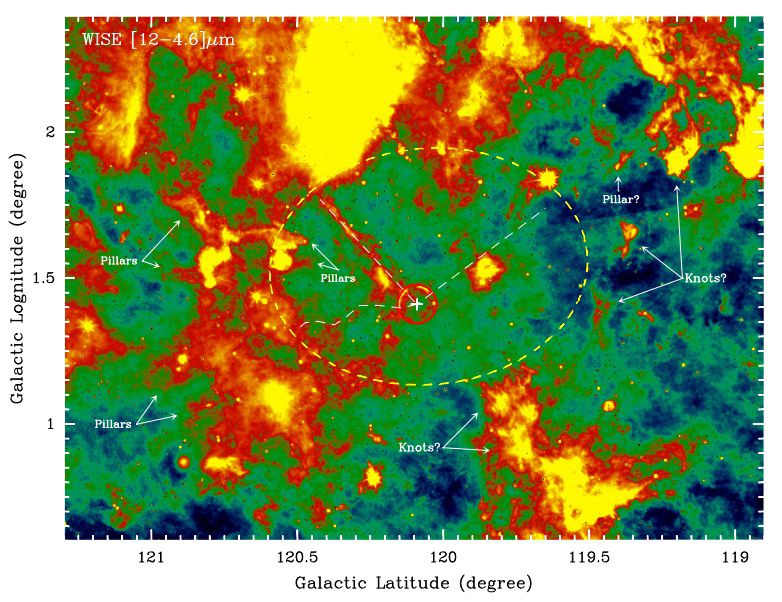 В ходе проведенных наблюдений исследователи выявили крупную полость размерами 0,3 на 0,6 градуса в космических окрестностях этих остатков сверхновой, наличие которой получило дополнительное подтверждение, благодаря снимкам в ИК-диапазоне, сделанным при помощи космических телескопов.
