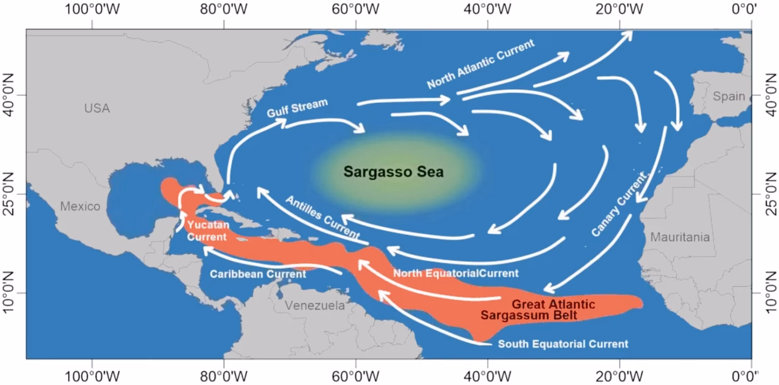 Саргасове море лежить у центрі кількох великих поверхневих течій, тому сьогодні ця тиха область збирає плавуче сміття з усієї Північної Атлантики. Петельні потоки затягують пластикові пакети, кришки пляшок, покинуті рибальські сіті й утримують їх у кругообігу.