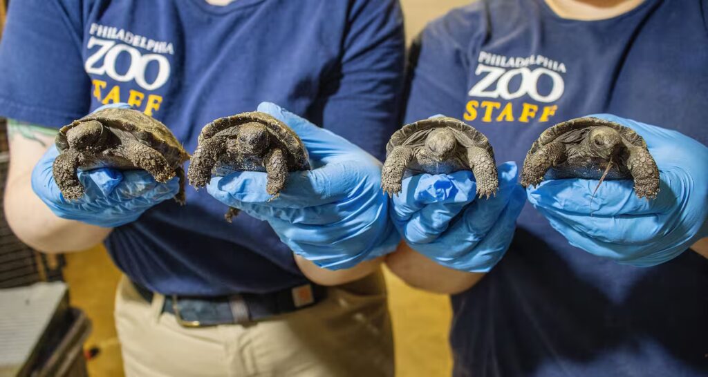 Новонароджені черепашки стали першими в історії Філадельфійського зоопарку, вирощеними представниками цього рідкісного виду. Західна черепаха Санта-Крус перебуває на межі зникнення у своєму природному середовищі — на Галапагоських островах. У зоопарках США налічується менше ніж 50 особин цього виду.