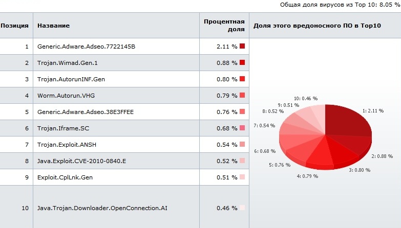 Во второй первой половине 2011 года также наметился ощутимый рост группы рекламного спама, представитель которой является лидером рейтинга Top 10 за октябрь. Это доказывает, что рекламное ПО остается прибыльным для преступников, хотя и малозаметным бизнесом.
