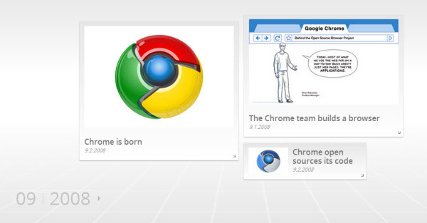 Хроника Chrome позволяет просмотреть в деталях каждую стадию формирования браузера. Наиболее часто упоминается тот факт, что Chrome становился быстрее, однако встречается и множество других событий, среди которых присутствуют даже первоапрельские шутки.