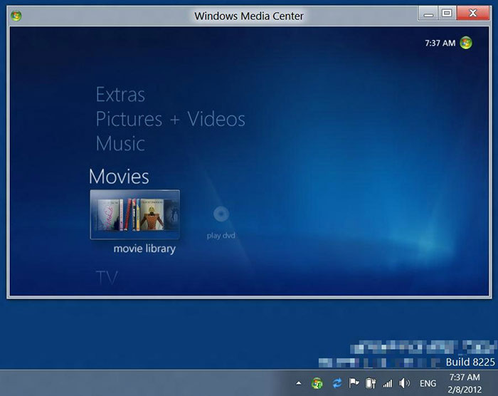 Microsoft подтверждает, что Media Center появится в финальной сборке ОС, но ничего не сообщает о бета-версии. Кроме того, судя по недавно опубликованному в Твиттере и приведённому выше официальному снимку, этот компонент практически не претерпит изменений по сравнению с использовавшимися в Windows 7. Однако в отличие от Windows 7, в новой ОС он будет компонентом изданий, рассчитанных на энтузиастов.