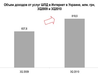 За год проникновение широкополосного доступа в Украине среди домохозяйств выросло на 6,1%, а доходы от этого вида услуг – на 35%. По данным украинского офиса iKS-Consulting, в Украине на 30 сентября 2010 года общее количество абонентов широкополосного доступа составило около 3,35 миллиона, из которых 2,87 миллиона – домашние пользователи. На 30 сентября 2010 года уровень проникновения ШД в Украине достиг 16,3% от общей численности домохозяйств