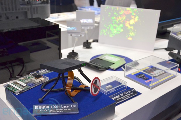 На стенде компании Panasonic, представленном в рамках выставки CEATEC 2012 в Японии, представлен прототип самого тонкого в отрасли модуля для лазерного проектора (блок формирования оптического изображения). Новинка отличается толщиной всего 7,5 мм, характеризуется разрешением 800 х 480 пикселей и яркостью 100 люмен.