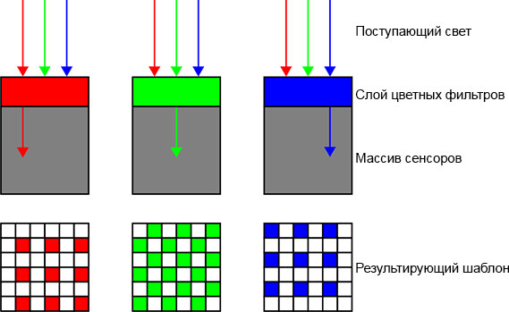 Проблема использования светофильтров состоит в том, что каждый светочувствительный элемент воспринимает только 30—50% цветовой (и световой) информации участка изображения, а 50—70% пропадает даром. Это не только очень сильно понижает чувствительность матрицы, но и заставляет прибегать к различным алгоритмам интерполяции (вроде demosaicing) для восстановления информации о цвете с соседних участков.