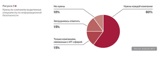 Ещё одна проблема, которую вскрыло исследование — это пропасть между намерениями и реальной защищённостью информации. При том, что лишь 10% топ-менеджеров и владельцев бизнеса сказали, что их компаниям не нужны специалисты по информационной безопасности, в реальности лишь немногие из них выделяют достаточно средств для создания отделов информационной безопасности.