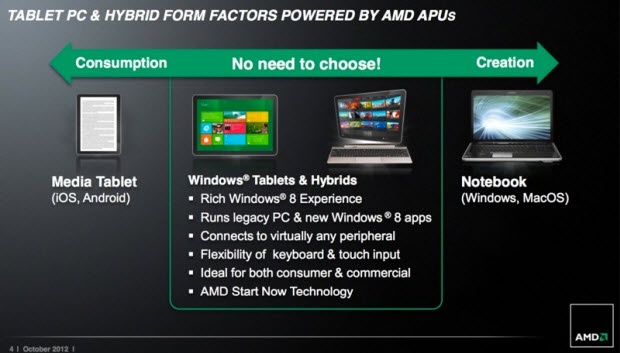 Intel также недавно представила свой процессор Z2760 Clover Trail с максимальным уровнем энергопотребления 1,7 Вт, разработанный специально для планшетных продуктов. Но в отличие от AMD, анонс этот сопровождался сообщением о большом количестве грядущих устройств от таких компаний, как Acer, ASUS, Dell, Fujitsu, HP, Lenovo, LG, Samsung, ZTE.