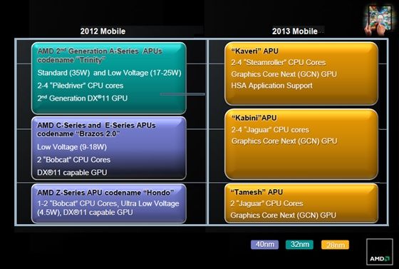 Ввиду того, что Z-60 имеет довольно посредственные показатели энергопотребления для планшетного рынка, AMD собирается запустить во второй четверти следующего года систему на чипе с кодовым именем Tamesh с парой CPU-ядер Jaguar и графическим ускорителем с архитектурой GCN. Она призвана дать производителю процессоров более высокие шансы конкурировать в новом для него секторе рынка.