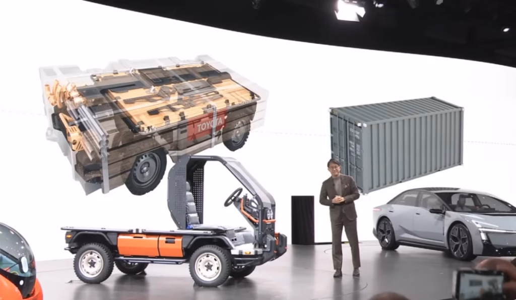 Президент Toyota Кодзі Сато під час презентації пояснив принцип роботи системи: автомобіль залишає завод у незавершеному вигляді, компоненти упаковуються в транспортний контейнер, а збирання та доопрацювання виконуються покупцями на місці. Після складання базової платформи власник самостійно визначає конфігурацію транспортного засобу залежно від завдань — для перевезення людей, вантажів або спеціалізованого обладнання.